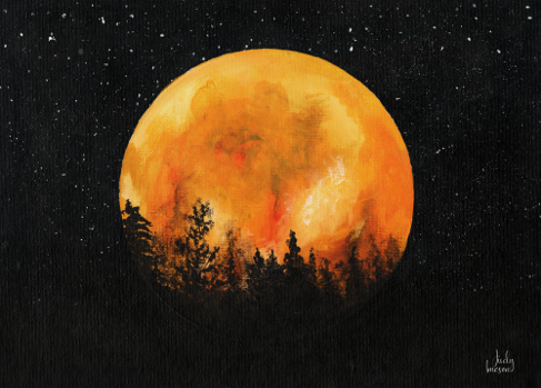 A large, glowing orange moon